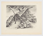 - Title: An outdoor shelter in front of which are piles of debris: Plate 4 from the portfolio 'Arquitectura Funcional'