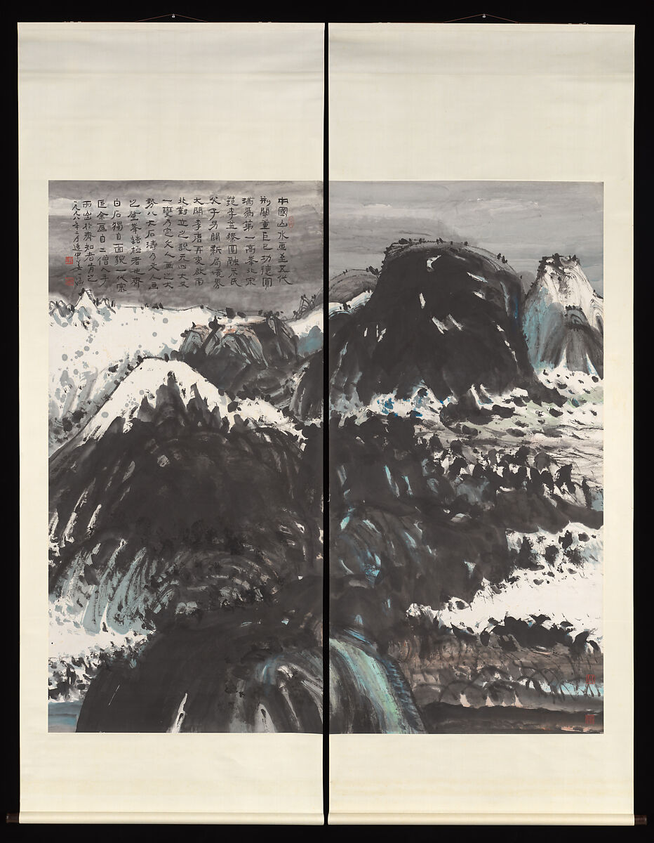 Chiang I-han was a polymath who studied classical Chinese painting, calligraphy, and Euro-American modern art. In his own paintings, especially from the 1980s on, Chiang synthesized his early training in the theory and practice of Chinese landscape painting with the bold scale and visual impact of modern art. This monumental work features a lengthy inscription encapsulating some of Chiang’s ideas about the Chinese landscape painting tradition and his place within it.