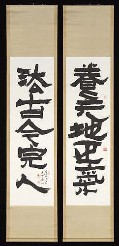 - Medium:Pair of hanging scrolls, ink and color on paper