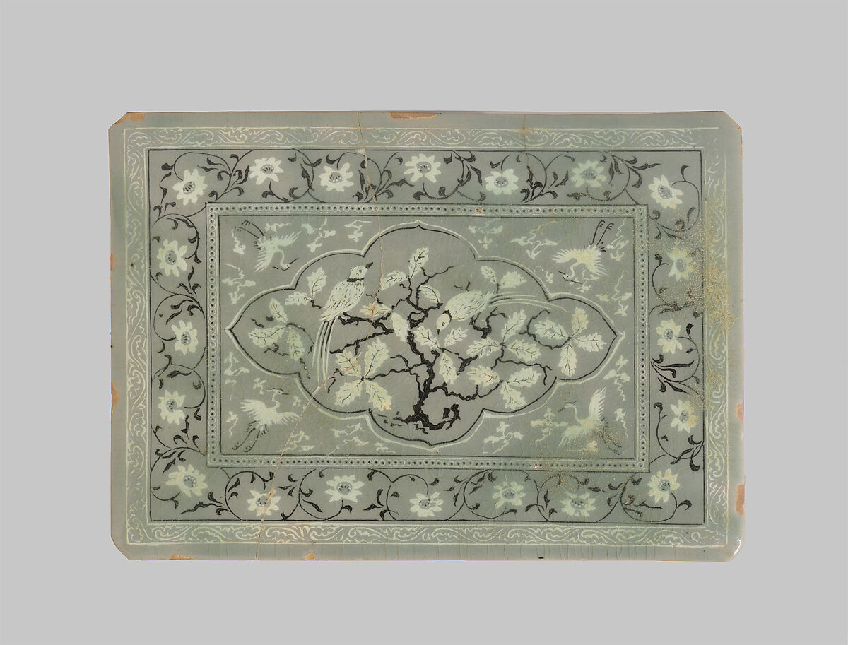 - 청자 상감 새 나무 꽃 무늬 판 고려