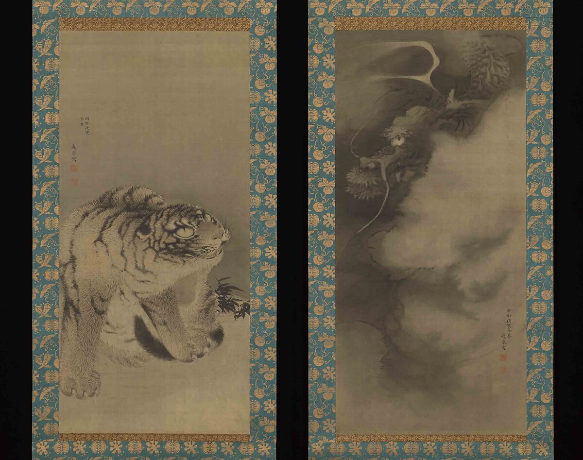 - Medium: Pair of hanging scrolls: ink on silk (dragon), ink and color on silk (tiger)