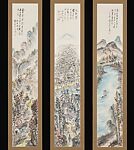 - Medium: Set of three hanging scrolls: ink and color on silk