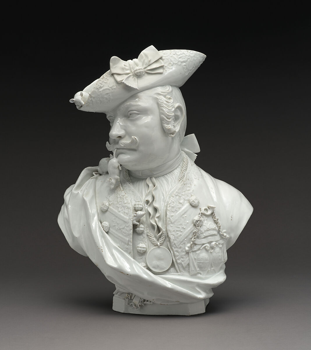 Captured in his comedic element, the elegantly coiffed Saxon court jester “Baron” Schmiedel is shown accompanied by a troupe of four mice, which often featured in his performances as a court entertainer. The bust was modeled by Johann Joachim Kändler and made at Meissen manufactory in 1739. Schmiedel, together with Joseph Fröhlich, the first court jester, were celebrated personalities at the courts of Augustus “the Strong” II, founder of Meissen manufactory, and his son, Augustus III. The porcelain bust of Schmiedel forms a stark contrast to classicizing depictions of powerful sovereigns, popes, and statesmen made by Meissen. This raises the question of why Augustus III chose to commemorate a fool whose main job it was to make people laugh. Jesters traditionally played an important role at the European courts. While their main purpose was to entertain the ruler, only fools at court had the power to tell the truth without fear of reprisals. This was not always the case. At times humor could be dangerous. Augustus II imprisoned Fröhlich after he had taken a joke too far. Escaping from jail, he was saved by a prank that he and Schmiedel pulled off, which succeeded in putting the king in a good humor once more.