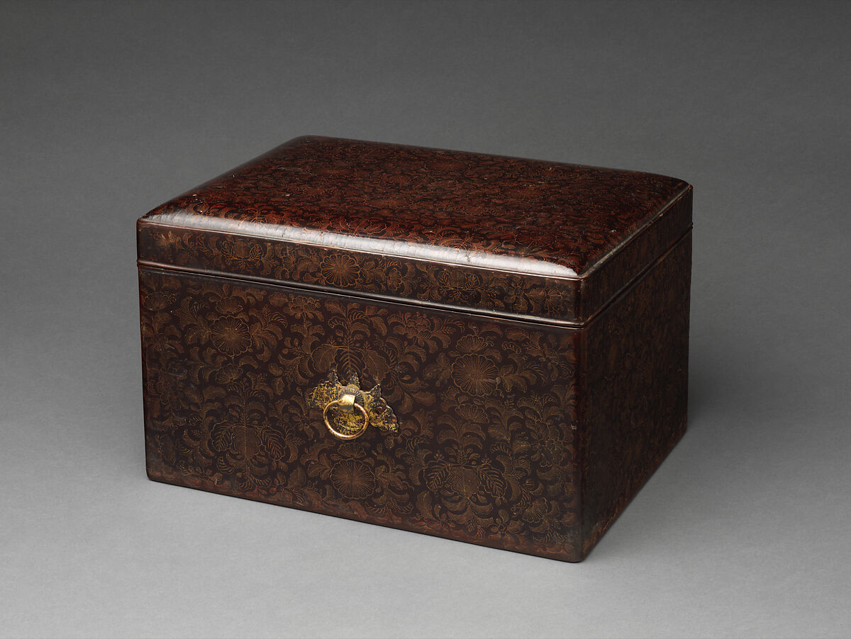 - Medium: Lacquered wood with incised gold (chinkin-bori); gilt bronze fittings