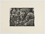 The exploitation of those who worked the land was often addressed by Mexican printmakers during the first half of the twentieth century. Fluctuating and inflated prices in particular were a concern. Here, a group of figures with grotesque faces oppress Indigenous farmers. The man at right points to a sign that reads "Corn $10 a kilo," revealing the profits that this greedy collective amassed by inflating the price of corn, a staple of the Mexican diet.