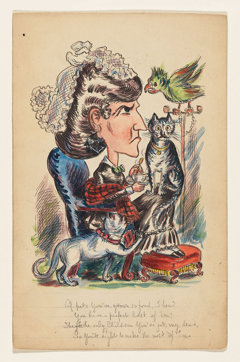 - Title: Original illustration for a comic Valentine: Old Maid with parrot and cat