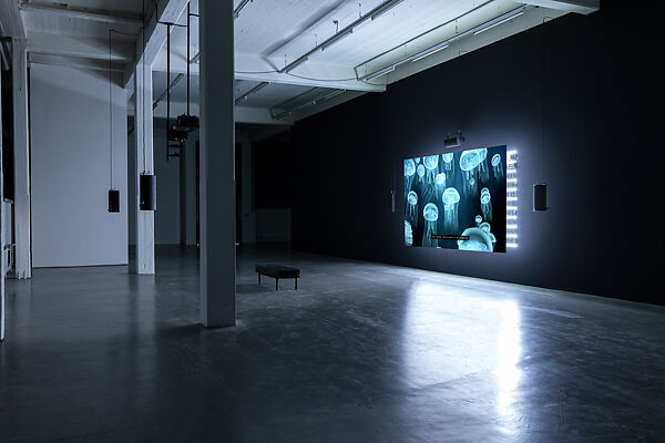 - Medium: Single-channel digital video installation, black-and-white and color, 5-channel sound, algorithmic editing system; LED lights, computer