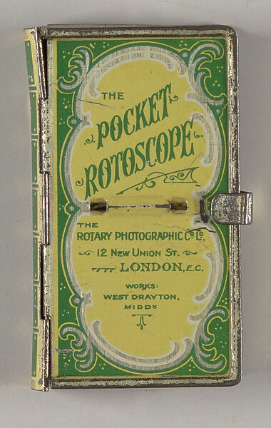 The Rotary Photographic Co., Ltd., produced both a large and a small collapsible tin metal stereoscopic viewers under patent #442342. This is the small version. Both were designed to resemble a book when closed. This viewer contains eleven Rotoscope cards: five views from the Paignton Series, and six views from the Torquay Series, eleven cards in total. -- description by Mindell Dubansky in consultation with Lynn Heckman
