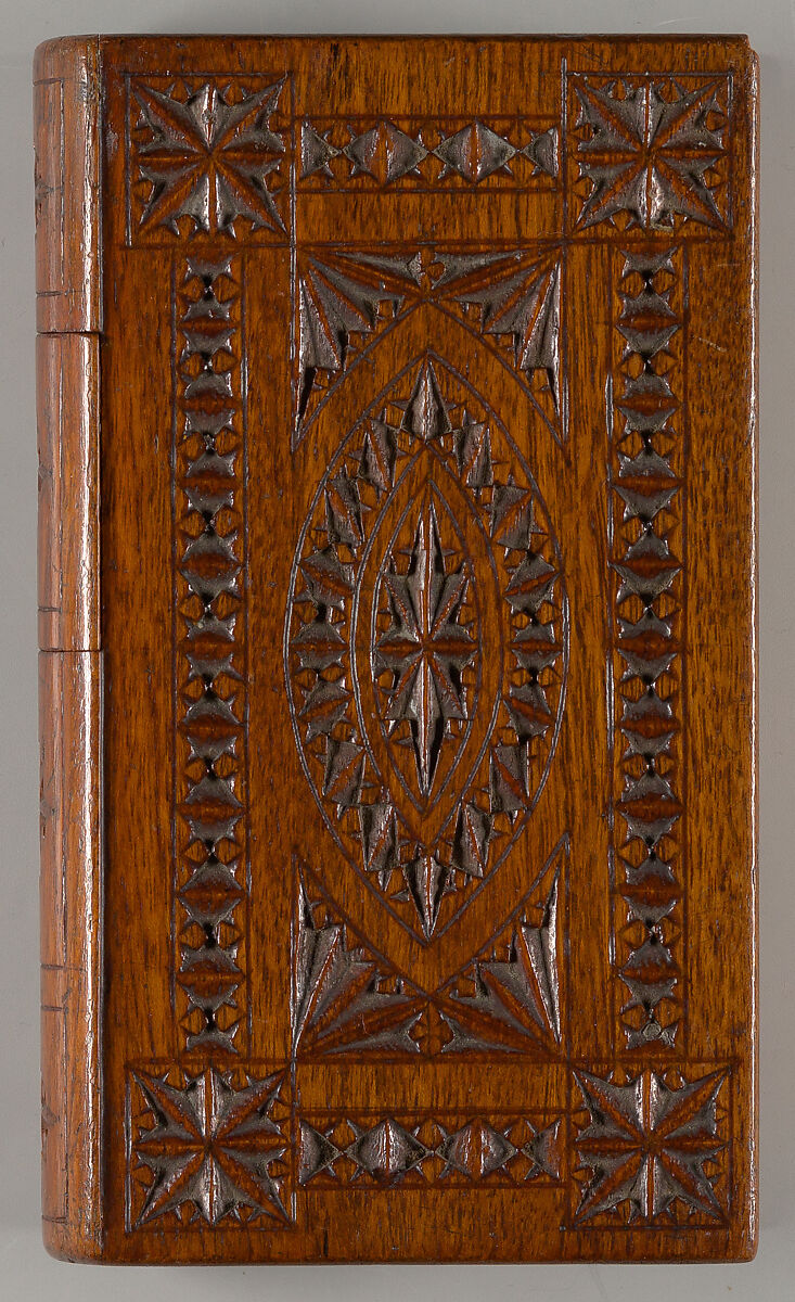 - Dimensions: 1 box : chip carved and incised wood, varnished ; Height: 7 1/2 × 4 3/4 in. (19 × 12 × 5 cm)