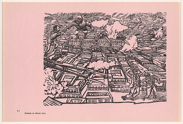 - Title:The ten tragic days 9-18 February 1913 (La decena tragica, 9/18 de febrero de 1913), Plate 71 from "450 Años de Lucha: Homenaje al Pueblo Mexicano" (450 Years of Struggle: Homage to the Mexican People)