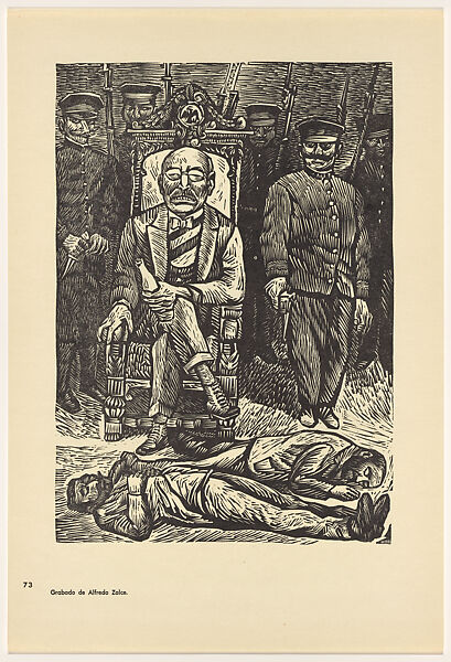 - Title:The criminal Victoriano Huerta seizing power on 19 February 1913 (El criminal Victoriano Huerta se adueña del poder, 19 de febrero de 1913), Plate 73 from "450 Años de Lucha: Homenaje al Pueblo Mexicano" (450 Years of Struggle: Homage to the Mexican People)