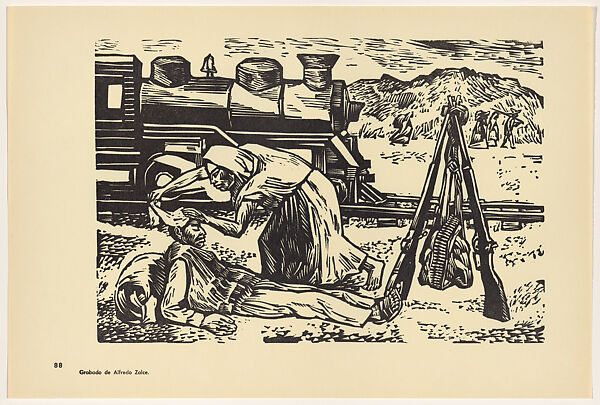 - Title:Female soldier assisting the wounded (La soldadera), Plate 88 from "450 Años de Lucha: Homenaje al Pueblo Mexicano" (450 Years of Struggle: Homage to the Mexican People)