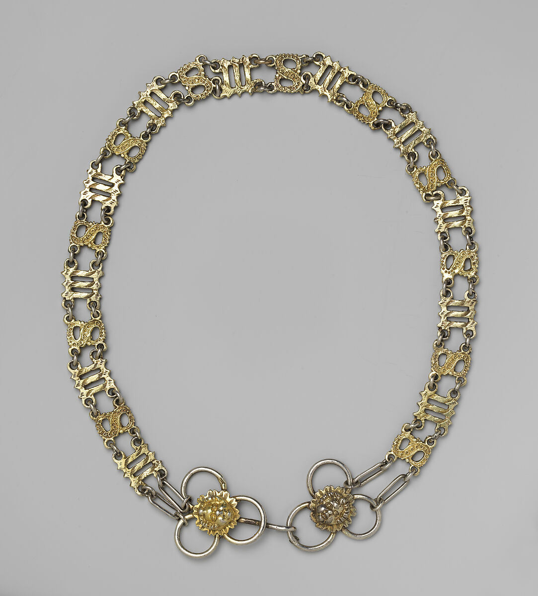 Though few medieval livery collars survive as objects, many are depicted in paintings and sculpture. This strikingly well-preserved example is similar to the collars comprised of S-shaped links (or Collars of Esses) that were popular at the English court from the late 14th century onward.