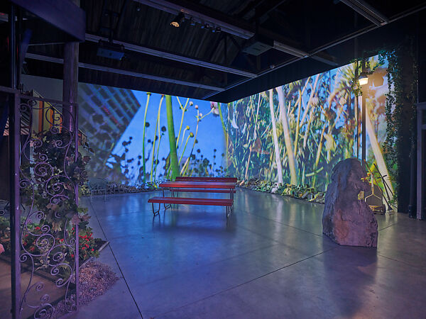 Inspired in equal measure by the pioneering video artist Nam June Paik, the radical performances of Yoko Ono, and televised media culture, the Swiss-born Rist came to broad public attention in the late 1980s. Her brashly feminist and lushly colored single-channel video works explored the body, often her own, as well as the natural world. By the mid-1990s, Rist broke free of the television monitor to produce a range of large-scale video installations that pushed the medium into new directions and dimensions. More recently, her projects have expanded into immersive multimedia environments like this one, which fuses the biological and the technological, the internal and the external, the private and the social.