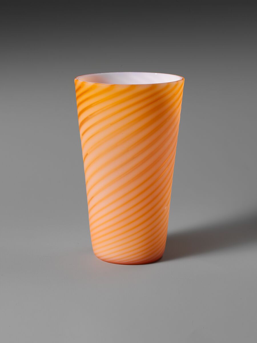 - Medium:Blown satin peach and pink glass