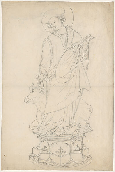 - Title: Reliquary with a Statue of Saint Luke, from Basler Goldschmiederisse (Basel goldsmith’s drawings)