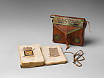 - Medium: Iron-gall ink and opaque watercolors on paper; leather case; paper-mâché front and back covers