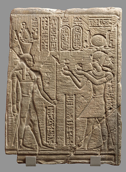 - Title: Relief depicting Ptolemy XII offering wine to Geb