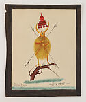 In the Ramayana, Rama’s bird-devotee Jatayu attempts to prevent Ravana’s abduction of Sita by obstructing the departure of Ravana’s chariot, seen clasped in the bird’s mighty beak. This was also a favored theme in Bengal narrative scroll paintings (pata). The treatment of the bird closely resembles depictions of the crane-demon (rakshasa) Bakasura whom the young Krishna slays by tearing his jaw apart. Inscribed in Bengali and English.