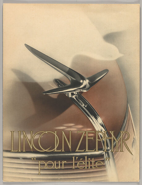 Illustrated throughout in colour and silver and in photography. A spectacular flyer designed by the French master printer Draeger for European customers of the famous American car manufacturer. Lincoln-Zephyr was a marque for the lower priced line of luxury cars in the Lincoln line 1936-40. Lincoln-Zephyr and Mercury, introduced 1939, bridged the wide gap between Ford’s V- 8 De Luxe line and the exclusive Lincoln K-series cars. This served a purpose similar to Cadillac's smaller LaSalle “companion car”. The car was conceived by Edsel Ford and designed by Eugene Turenne Gregorie. Introduced on the 2nd of November 1935 as a 1936 model, the Lincoln-Zephyr was extremely modern with a low raked windscreen, integrated fenders, and streamlined aerodynamic design. It is noted for being one of the first successful streamlined after the Chrysler Airflow’s market failure. -- vendor description