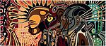 Jacob Yacouba, a key figure in Senegal’s art scene, created Rendez-vous au Soleil as part of his exploration of love, identity, and the complexity of human relationships. This tapestry, depicting the fragmentation of a lovers' quarrel, uses a horizontal format—unusual for tapestries from Thiès—to enhance its narrative flow. Known for his portrayal of women, particularly the Signares of Saint-Louis, Yacouba’s work captures both sensuality and tension. Rendez-vous au Soleil exemplifies his ability to convey deep emotional and cultural themes through abstract forms, and has been showcased in major public venues in Europe and the United States.