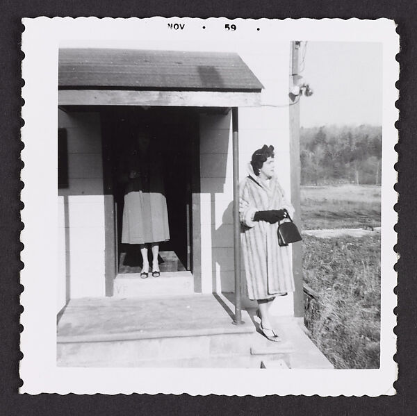 - Title: [Unnamed crossdresser by the doorway in a fur coat, Chevalier d’Éon, Hunter, NY]