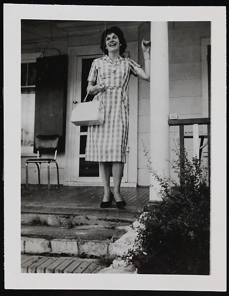 - Title: [Edith in a checkered dress, smiling on the front porch, Chevalier d’Éon, Hunter, NY]