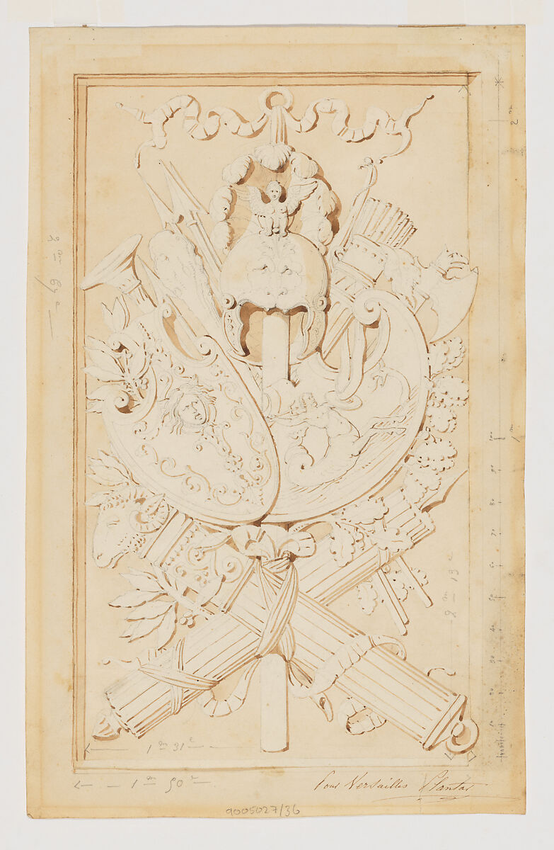- Title: Design for a Wall Panel with Armorial Trophy for the Escalier des Princes at Versailles