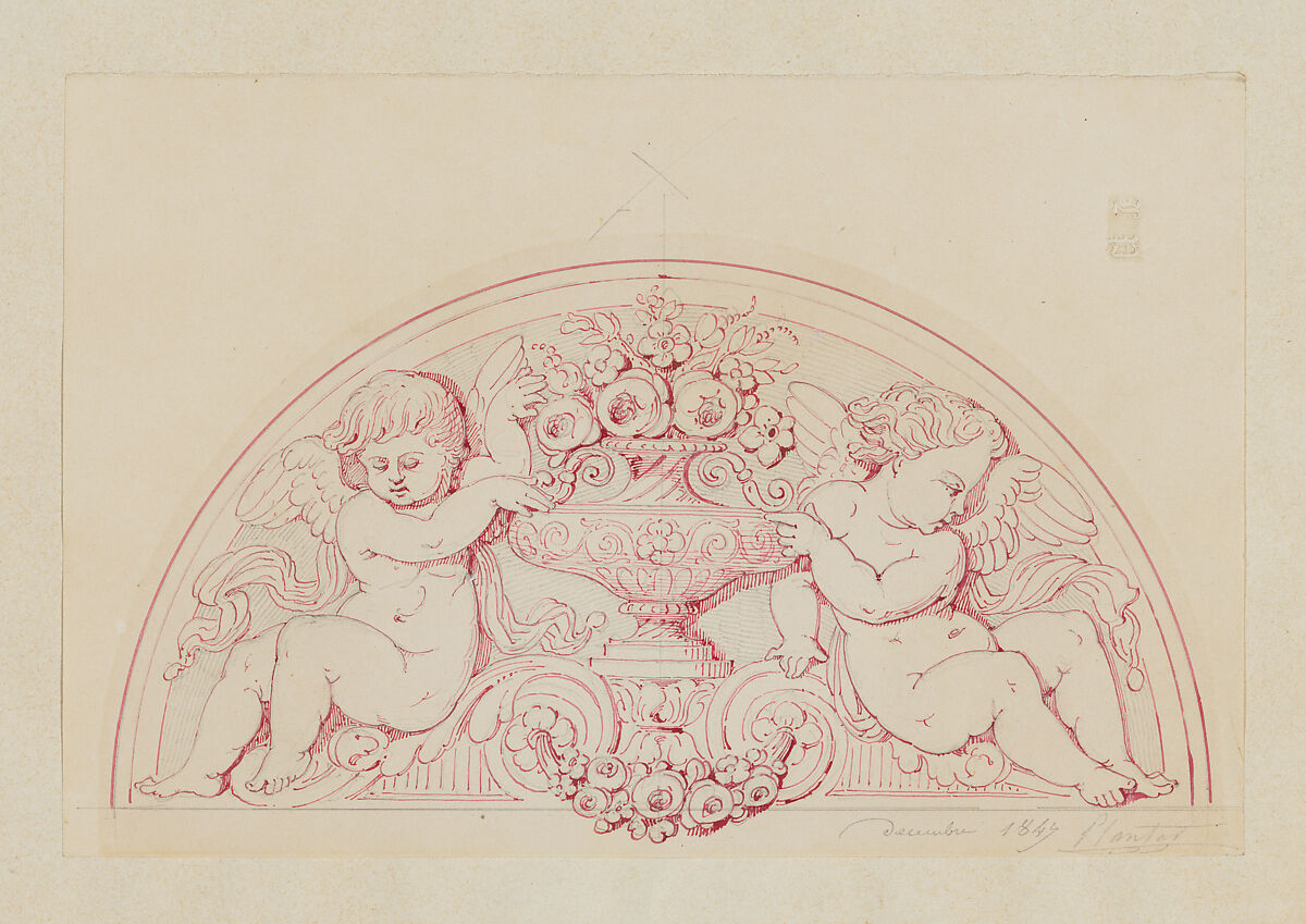- Title: Design for an Overdoor with Two Putti on either side of a Vase