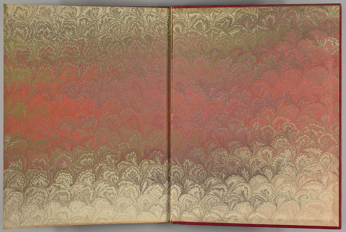Poems printed on marbled papers mounted on each page.
