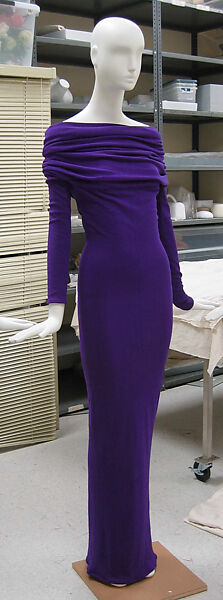 Giorgio di Sant’Angelo began his career in fashion with designs for plastic jewelry in the late 1960s. Early examples were featured in Vogue magazine under editor, Diana Vreeland and earned Sant’Angelo a Coty Award in 1968. His first clothing collections were inspired by traditional Romany and Native American dress and reflected the multicultural and do-it-yourself aesthetics of the hippie movement. The designs, which rejected the strictly tailored forms of the previous decade, featured natural silhouettes achieved through wrapping, layering, and tying fabric around the body. They earned the designer his second Coty Award in 1970. Sant’Angelo’s popularity waned along with the mode for eclecticism and fantasy in the early 1980s. He returned to favor in the late 80s with designs for wrapped, body conscious garments in brightly-colored silk stretch gauze. He won his second clothing award for his use of stretch fabrics from the Council of Fashion Designers of America in 1988, shortly before his death in 1989.
