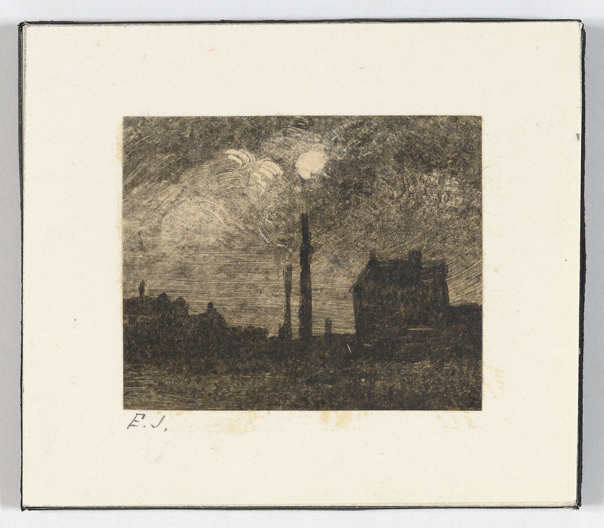 - Medium: Brush and lampblack, turpentine, and wax on wax-coated paper with wiping and scraping