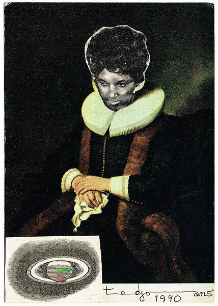Ted Joans was a poet, musician, and visual artist, whose work intersects with many intellectual, political, and social movements of the twentieth century. A close friend of famed jazz musician Charlie Parker, Joans adopted the motto, "Jazz is my religion, surrealism is my point of view," not only to describe the forms of his artistic improvisation, but his personal attitude to life. In 1990 he began Some Sum (of our Ancestors were Old Masters too!), a series of collages on souvenir art postcards in which he inserted a Black figure into the composition or covered the face of an existing figure with that of a Black man or woman. Often the latter were musicians and singers such as James Brown, Aretha Franklin, and Stevie Wonder, among others. Drawing on the legacy of Surrealism, Joans's collages produce both humorous insights and razor-sharp critiques of mainstream cultural criteria for determining historical worth, aesthetic taste, and financial value.