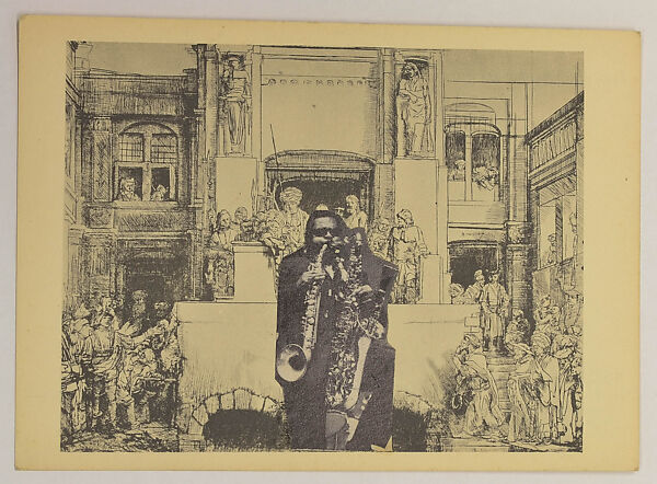 Ted Joans was a poet, musician, and visual artist, whose work intersects with many intellectual, political, and social movements of the twentieth century. A close friend of famed jazz musician Charlie Parker, Joans adopted the motto, "Jazz is my religion, surrealism is my point of view," not only to describe the forms of his artistic improvisation, but his personal attitude to life. In 1990 he began Some Sum (of our Ancestors were Old Masters too!), a series of collages on souvenir art postcards in which he inserted a Black figure into the composition or covered the face of an existing figure with that of a Black man or woman. Often the latter were musicians and singers such as James Brown, Aretha Franklin, and Stevie Wonder, among others. Drawing on the legacy of Surrealism, Joans's collages produce both humorous insights and razor-sharp critiques of mainstream cultural criteria for determining historical worth, aesthetic taste, and financial value.