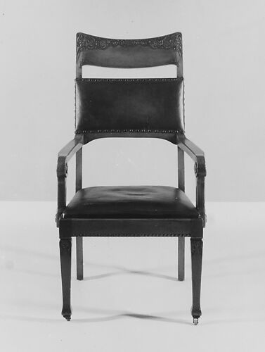 Patented in 1875 by German-born Chicago craftsmen Herny Reupke and Fredrick W. Krause, this chair is a version of a design known to have been produced in Germany by architect and designer Edwin Oppler and in New York by the firm of Kimbel & Cabus. Described by Krause as "Patent Gothic Star Chair," it was much admired for successfully making Modern (or Reform) Gothic chairs accessible to middle class consumers of more modest means than those who would have purchased such a chair from Kimbel & Cabus in New York. (See acc. no. 2001.67). The patent states that the chair’s construction, distinguished by a back that slides through the seat and into the rear legs, allows for easy disassembly, facilitating storage or shipping. The prevailing design reform ideals of honesty to materials and ornament guided by structure and function are here achieved efficiently and affordably through strategic use of machines, something most design reformers eschewed. In so doing, Krause succeeded in fully realizing the reformers’ aims of producing fine furnishings that were accessible to a broad segment of society.