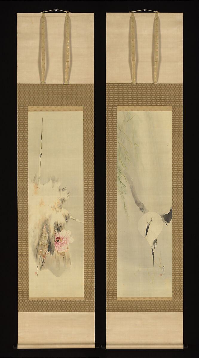 - Medium: Pair of hanging scrolls: ink and color on silk