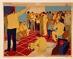 This print is one of a series of twenty that René Mederos produced in Cuba in 1973 to commemorate the twentieth anniversary of Fidel Castro’s attack on the country’s second largest military garrison, known as the Moncada Barracks. Cited historically as the opening salvo of the Cuban Revolution (1953–59), the Castro regime’s narrative of events surrounding the attack was intimately familiar to most Cubans at the time of the series’ production. What may appear today as insignificant details in the prints’ compositions, would have been recognized immediately by many in Cuba at the time as key to the official narrative of events. The series takes its name from a celebrated speech Castro delivered at his 1953 trial for masterminding the attack, echoing his assertion that "History will absolve me" by depicting the failed attack on the garrison as a catalyst for the revolution that succeeded in overthrowing the government of Fulgencia Batista six years later. Drawing on multiple artistic styles allowed Mederos to maximize the works’ visual effect and lends a certain rhythm to the experience of viewing them in sequence. In some prints, narrative figuration drives the story forward, while in others, greater formal experimentation encourages the viewer to pause and consider the broader stakes of the history in question.