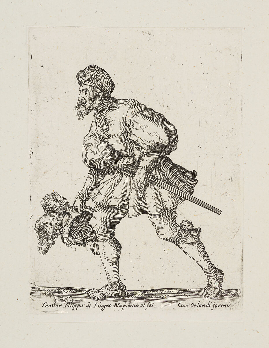 - Title:Soldier holding a plumed hat walking to the left, from the series 'Capricci e habiti militari'