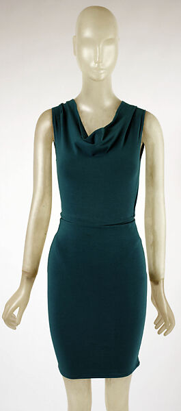 Giorgio di Sant’Angelo began his career in fashion with designs for plastic jewelry in the late 1960s. Early examples were featured in Vogue magazine under editor, Diana Vreeland and earned Sant’Angelo a Coty Award in 1968. His first clothing collections were inspired by traditional Romany and Native American dress and reflected the multicultural and do-it-yourself aesthetics of the hippie movement. The designs, which rejected the strictly tailored forms of the previous decade, featured natural silhouettes achieved through wrapping, layering, and tying fabric around the body. They earned the designer his second Coty Award in 1970. Sant’Angelo’s popularity waned along with the mode for eclecticism and fantasy in the early 1980s. He returned to favor in the late 80s with designs for wrapped, body conscious garments in brightly-colored silk stretch gauze.