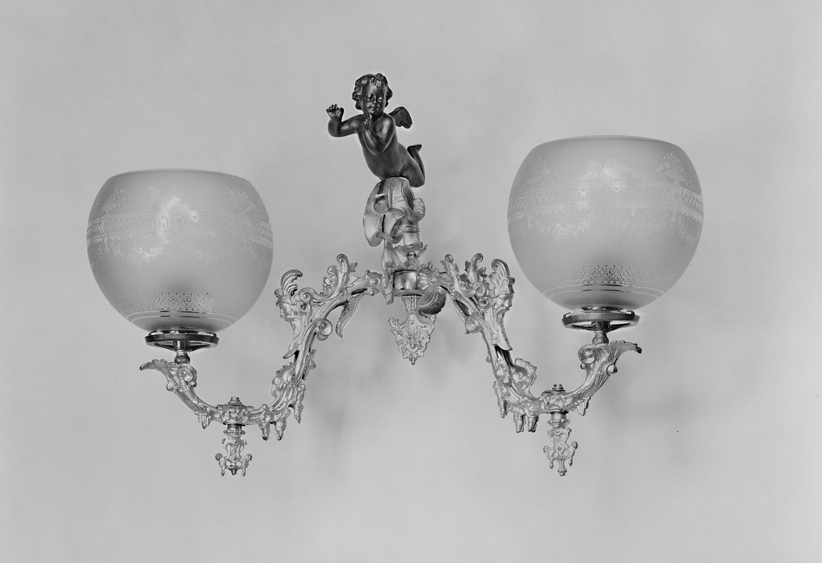 This wall sconce and its mate (64.36.5) come from the parlor of the Tweedy House, built in 1853 in North Attleboro, Massachusetts.