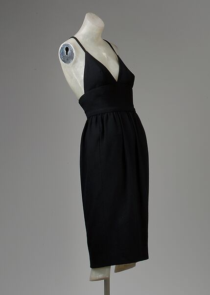 Norman Norell, who, by the early 1960s, had become one of the most globally respected New York fashion designers by perfecting a classic silhouette complete with couture-quality finishing details and exquisite paillette and bugle-bead embroidery techniques, created simply tailored evening sheaths and impeccably cut day suits that reflected both a refined mature sensibility and a youthful spirit. This Norell "little black dress" is the quintessential cocktail sheath of the early 1960s, championing a playful leisurely aesthetic while still propagating a certain formality inherent in cocktail dressing. Designers like Ceil Chapman and Nettie Rosenstein were creating beautiful late day and evening dresses for the American market, but Norman Norell had his eye on the international scene; he combined the American invention of "day-to-evening" dressing with the subtlety and simplicity of French early evening garb. Priced comparably to the French couture, the visionary Norell dress became both the immortal symbol of mid-century bourgeois sociability and the champion of youthful flirtation.