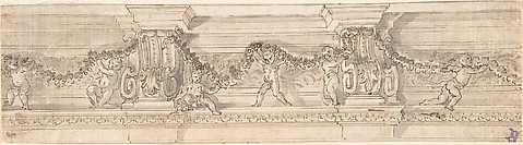 Design for a Trophy with Sword and a Plumed Helmet Decorated with Grotesques Masks, Classical Motifs