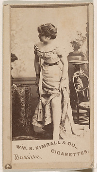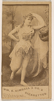 Actress leaning on prop ballustrade, from the Actresses series (N203) issued by Wm. S. Kimball & Co.