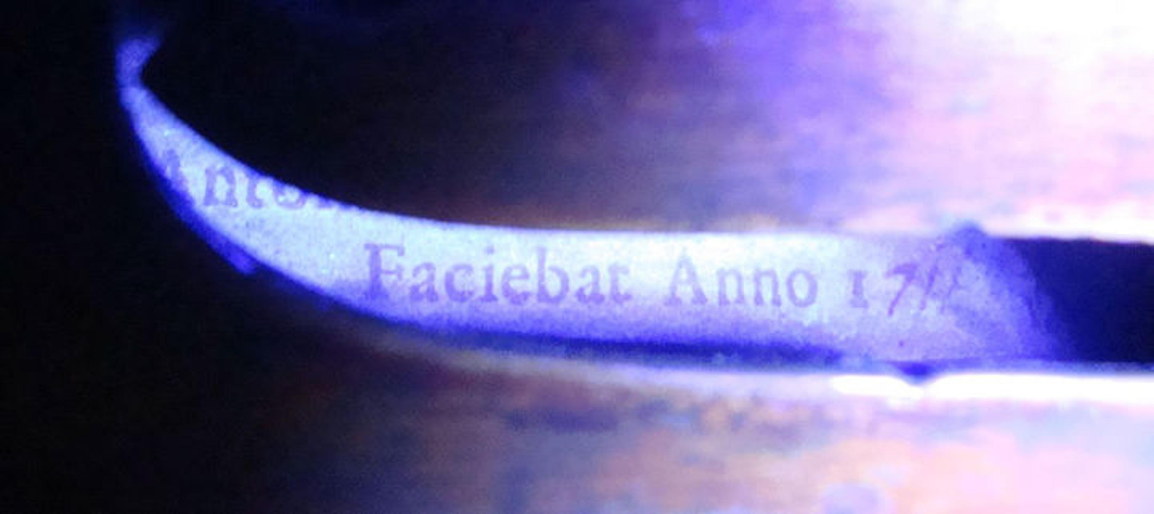 In order to come to a conclusion about the date, the Department of Musical Instruments consulted with Yana van Dyke, a paper conservator at the Museum, about the label inside "The Antonius." After examining the paper, she confirmed that the label was consistent with early 18th-century paper and that there had been no evidence of it having been tampered with or removed. She interpreted the label as reading "17ii," or "1711," and with the help of ultraviolet light this is made obvious to even the most untrained eye.
