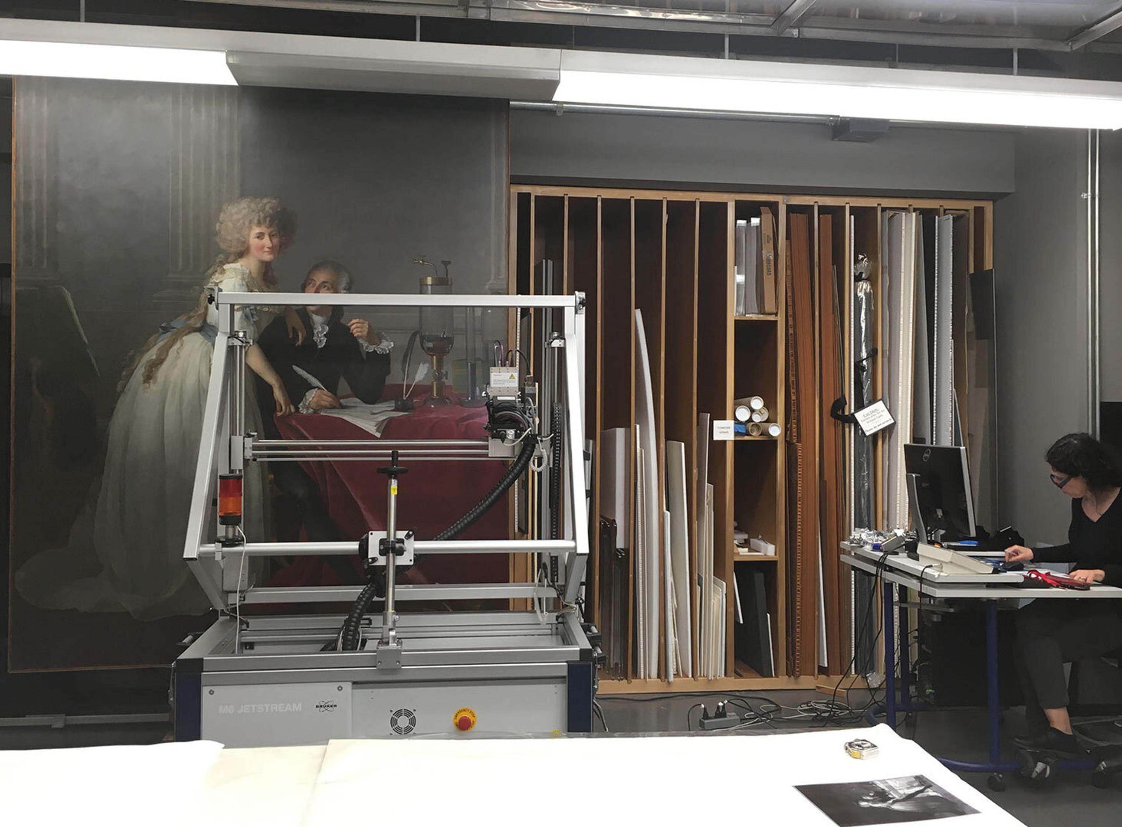 Research scientist Silvia A. Centeno acquiring X-ray fluorescence maps of David’s portrait of the Lavoisiers. Photo credit: Dorothy Mahon, 2019
