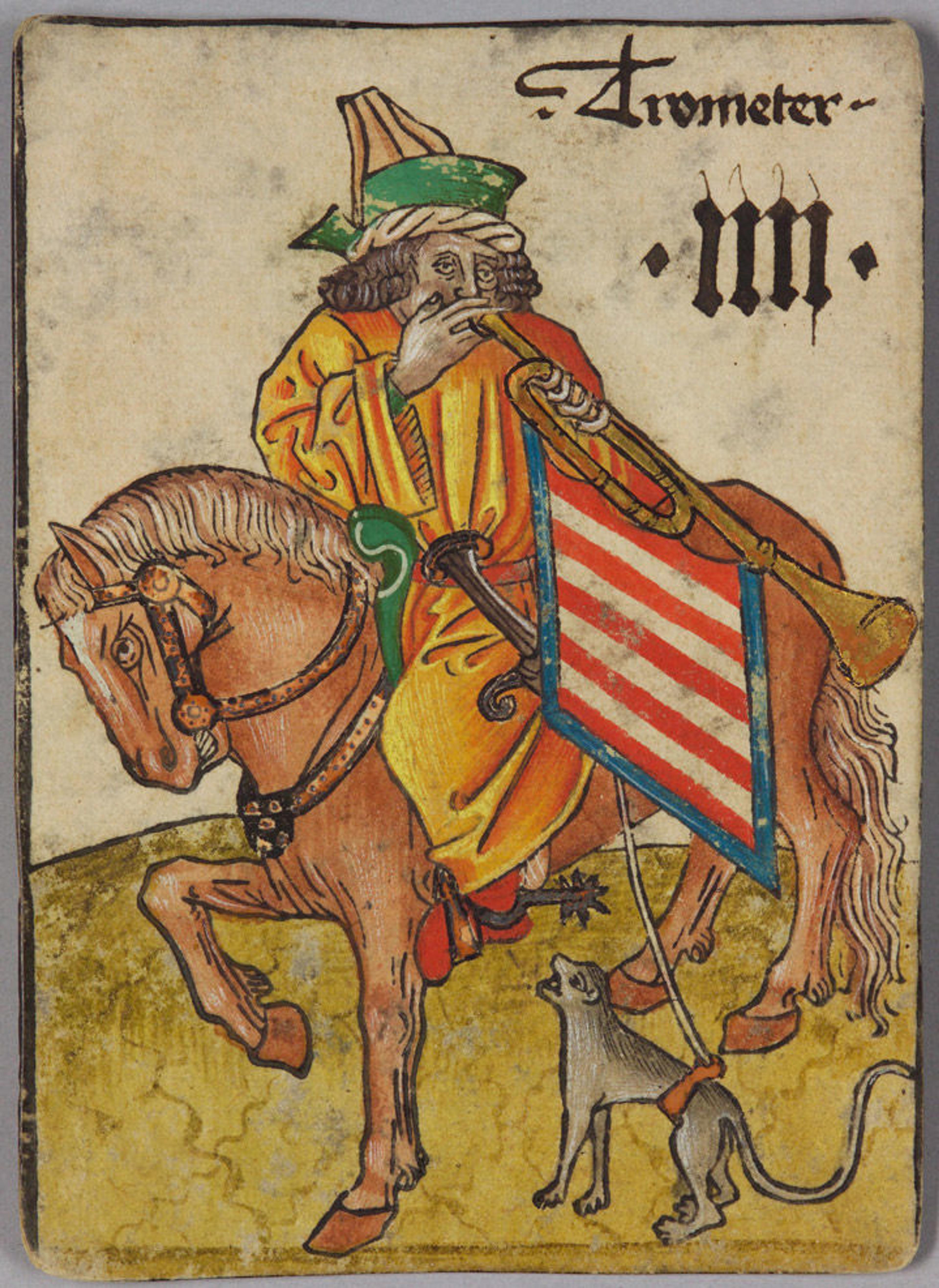 4 (Trumpeter) of Hungary, from The Courtly Household Cards. Kunsthistorisches Museum Wien, Kunstkammer (KK 5088)