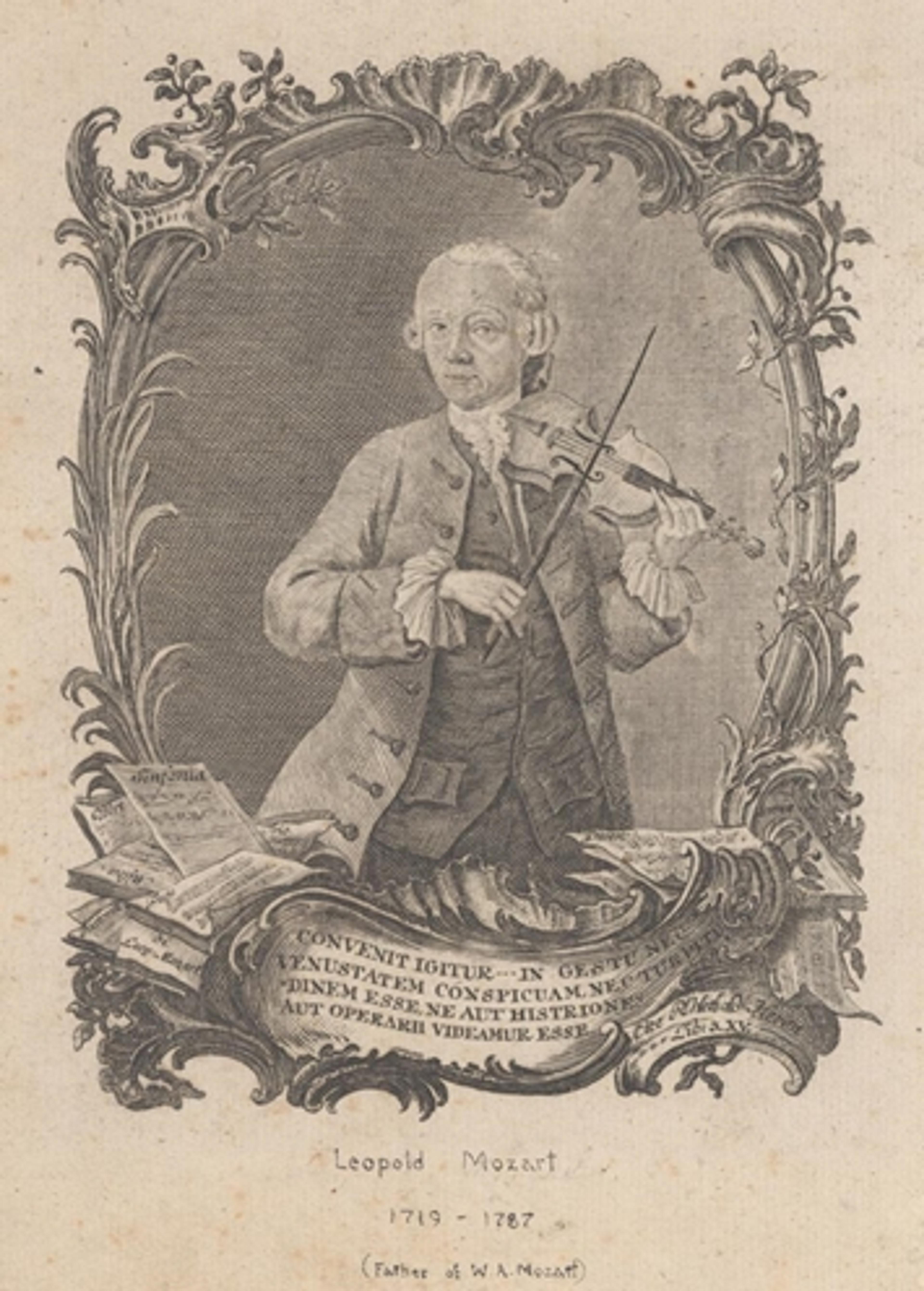 Right: J. A. Friedrich (German, mid-18th century). Leopold Mozart Playing the Violin, 1756. Etching and engraving, sheet: 8 1/8 x 6 1/8 in. (20.6 x 15.5 cm). The Metropolitan Museum of Art, New York, The Crosby Brown Collection of Musical Instruments, 1901 (01.2.63)