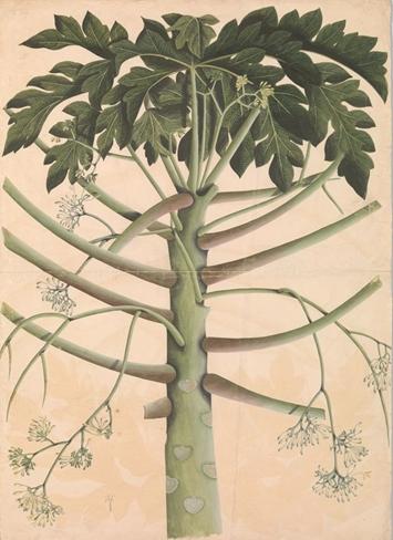 Left: Male Papaya Tree, ca. 1790–1800. India, probably Calcutta. Watercolor on paper, H: 29 3/4 in. (75.6 cm), W: 21 7/16 in (54.4 cm). The Metropolitan Museum of Art, New York, Purchase, Louis E. and Theresa S. Seley Purchase Fund for Islamic Art, 2016 (2016.169)