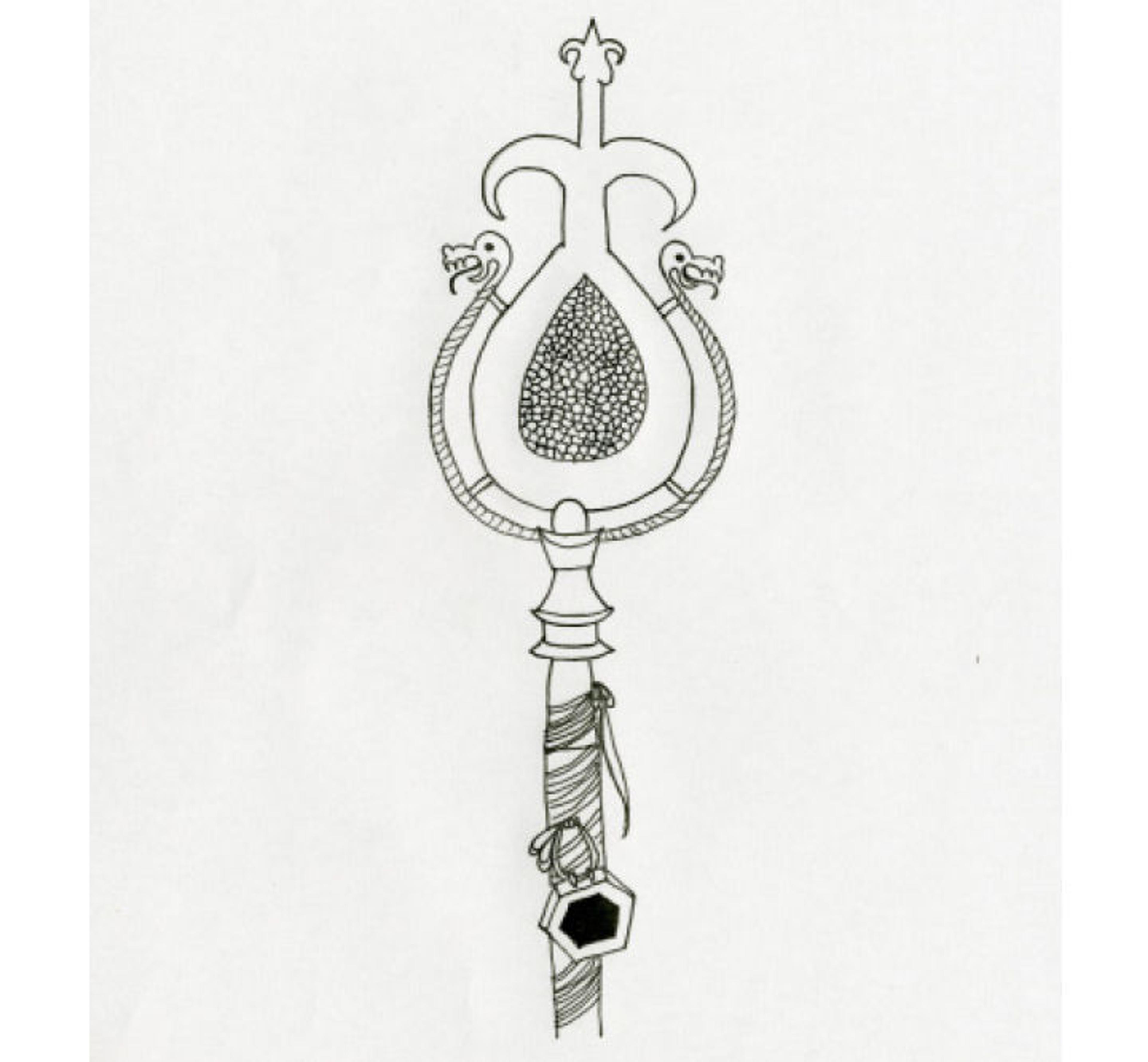 Image of a banner Qur'an attached to a military standard. Drawing by Rachel Parikh