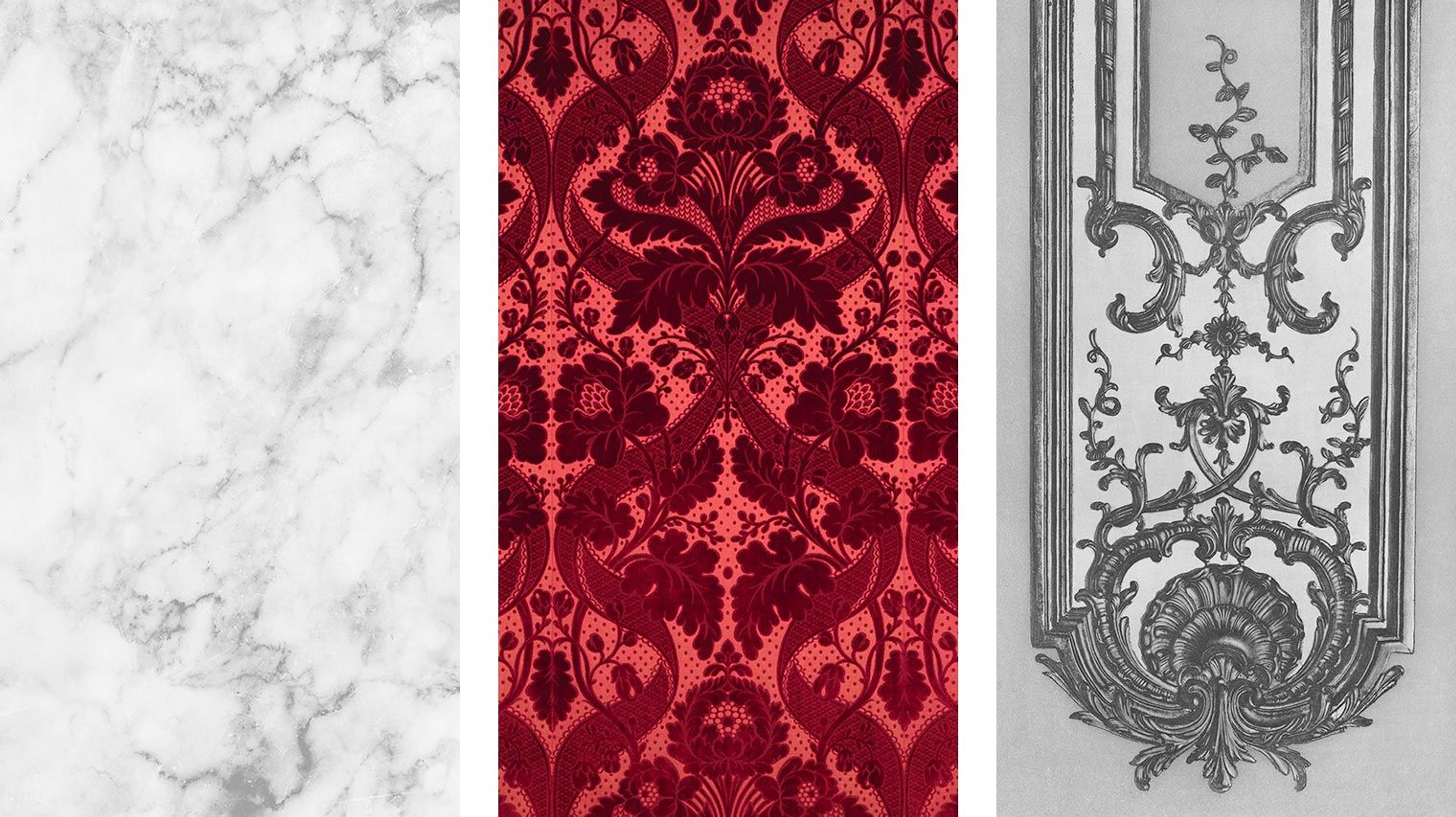 We categorized the robust range of architectural finishes in the palace into three main groups: marbles, wood paneling, and fabrics. All of these materials offer distinct sensorial qualities—they feel, sound, smell, and look different.